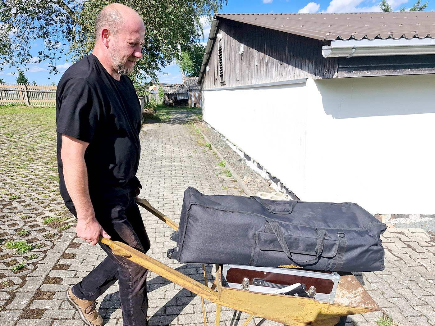 Bei großer Hitze haben wir aufgebaut. Zum Glück gab es vor Ort moderne Transportfahrzeuge.